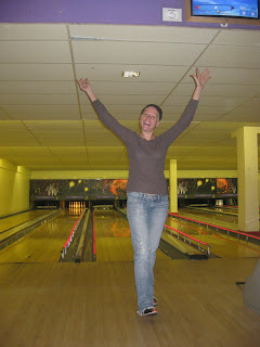 I assumed bowling skills would be like riding a bike skills. It wasn’t. I got one strike, and that was a complete fluke. Jo on the other hand got 4 strikes in 1 game, 3 during one song, “reach for the stars”. Annoying because it entailed a lot of post-strike celebratory dancing, see?